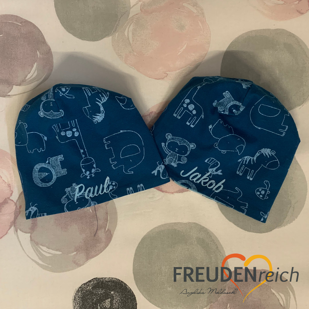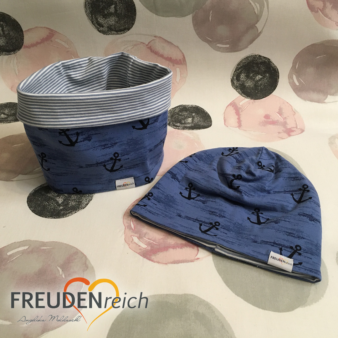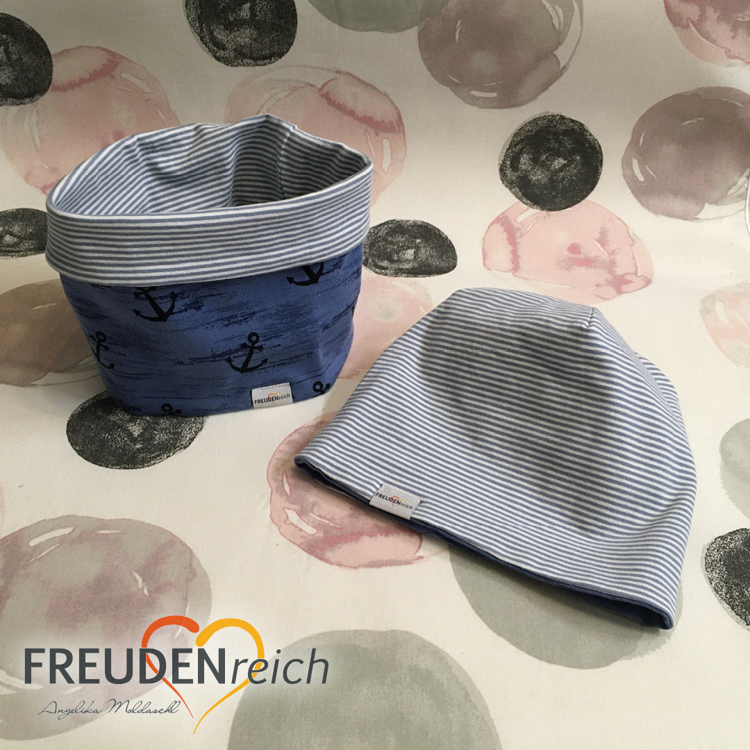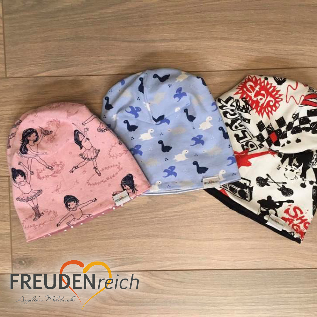 Eine Kombination aus angenehmem Jersey-Stoff und kuscheligem French Terry, zusammengenäht zu einem hübschen Wendebeanie. Passend dazu gibt's auch den Loop-Schal. Viele verschiedene Stoffe zur Auswahl und natürlich gerne mit individuellem Aufdruck.